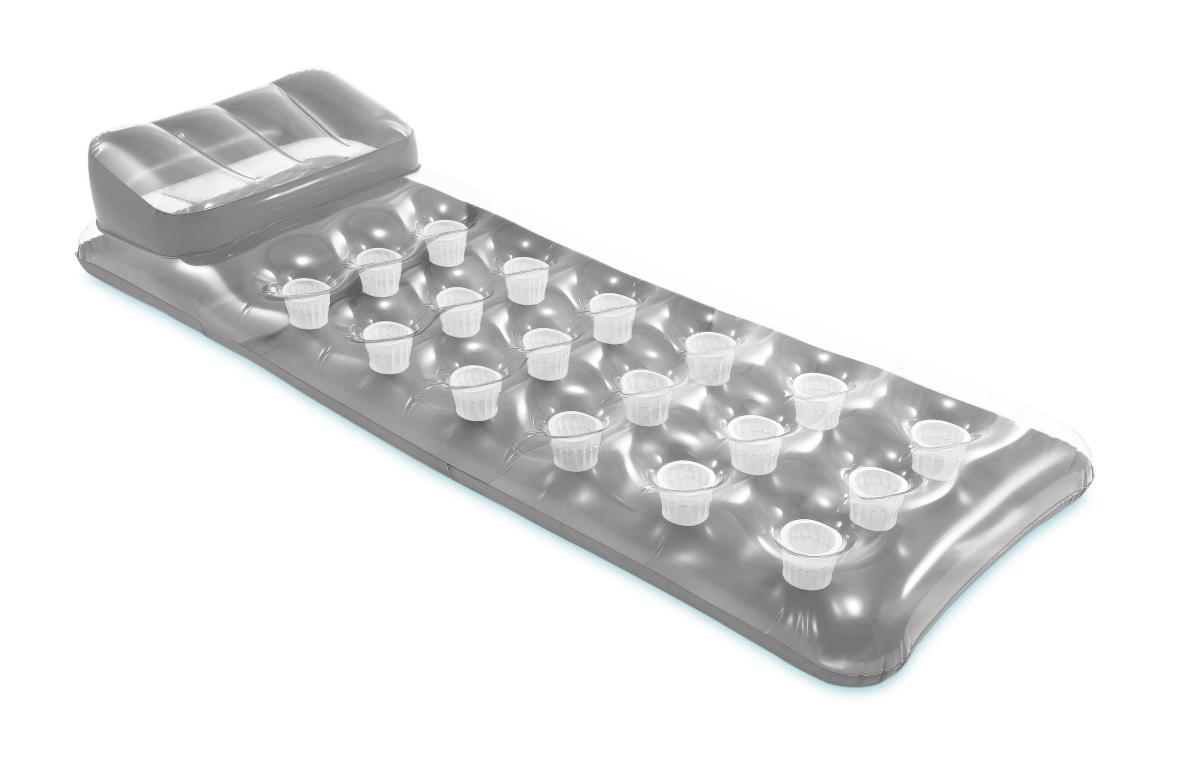 Nafukovací lehátko s otvory. 2 vzduchové komory. Přední strana průhledná, spodní stříbrná. Součástí opravná sada. Nafukovací hračky a potřeby Intex splňují nejpřísnější bezpečnostní normy na zpracování a použité materiály. Rozměry: 188 x 71cm