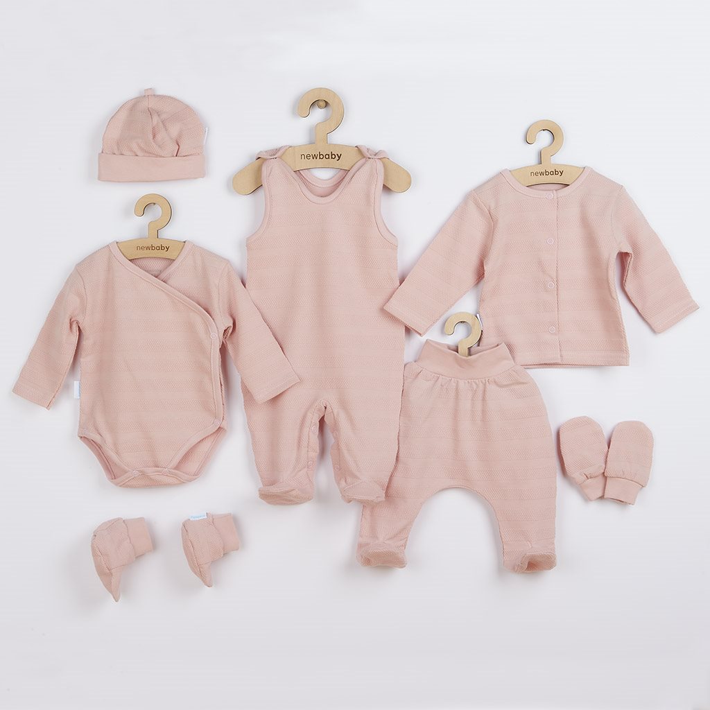 Roztomilá kojenecká 7-dílná soupravička české značky New Baby I AM pro miminka. Soupravička je vyrobena z velmi příjemného, měkkého a kvalitního materiálu, který je vhodný pro miminka a je vhodná nejen do porodnice. Obsahuje celorozepínací body s dlouhým rukávkem, dupačky, polodupačky, kabátek, čepičku, rukavičky a capáčky. Body má boční zapínání po celé délce a mezi nožičkama na cvočky. Dupačky mají zapínání na cvočky na ramínkách a mezi nožičkama, coš usnadní oblékání a přebalování. Kabátek má zapínání na cvočky po celé délce. Čepička s širším lemem dobře drží na hlavičce miminka a nepadá. Je velmi praktická a netlačí na hlavičku miminka. Rukavičky a capáčky mají širší stahovací manžetku. Celá soupravička má nový neobyčejný design s atraktivním vzorem látky. Je navržena s ohledem na potřeby miminka a je vhodná i jako milý dáreček. Soupravička je v praktické Eko krabičce. Složení: 100% bavlna.