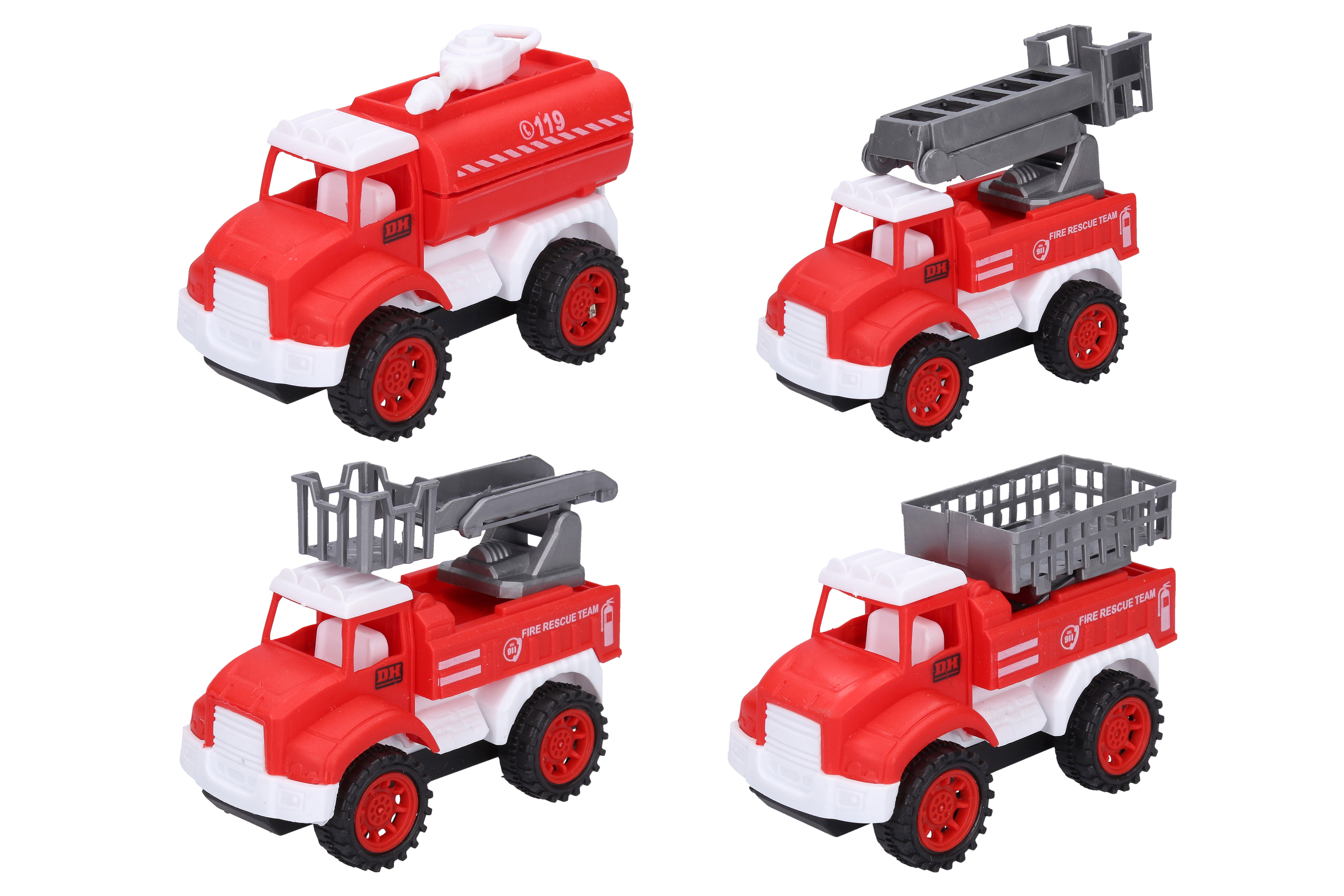 Auta hasičská 4 ks. Velikost 10,5 cm. Na setrvačník.