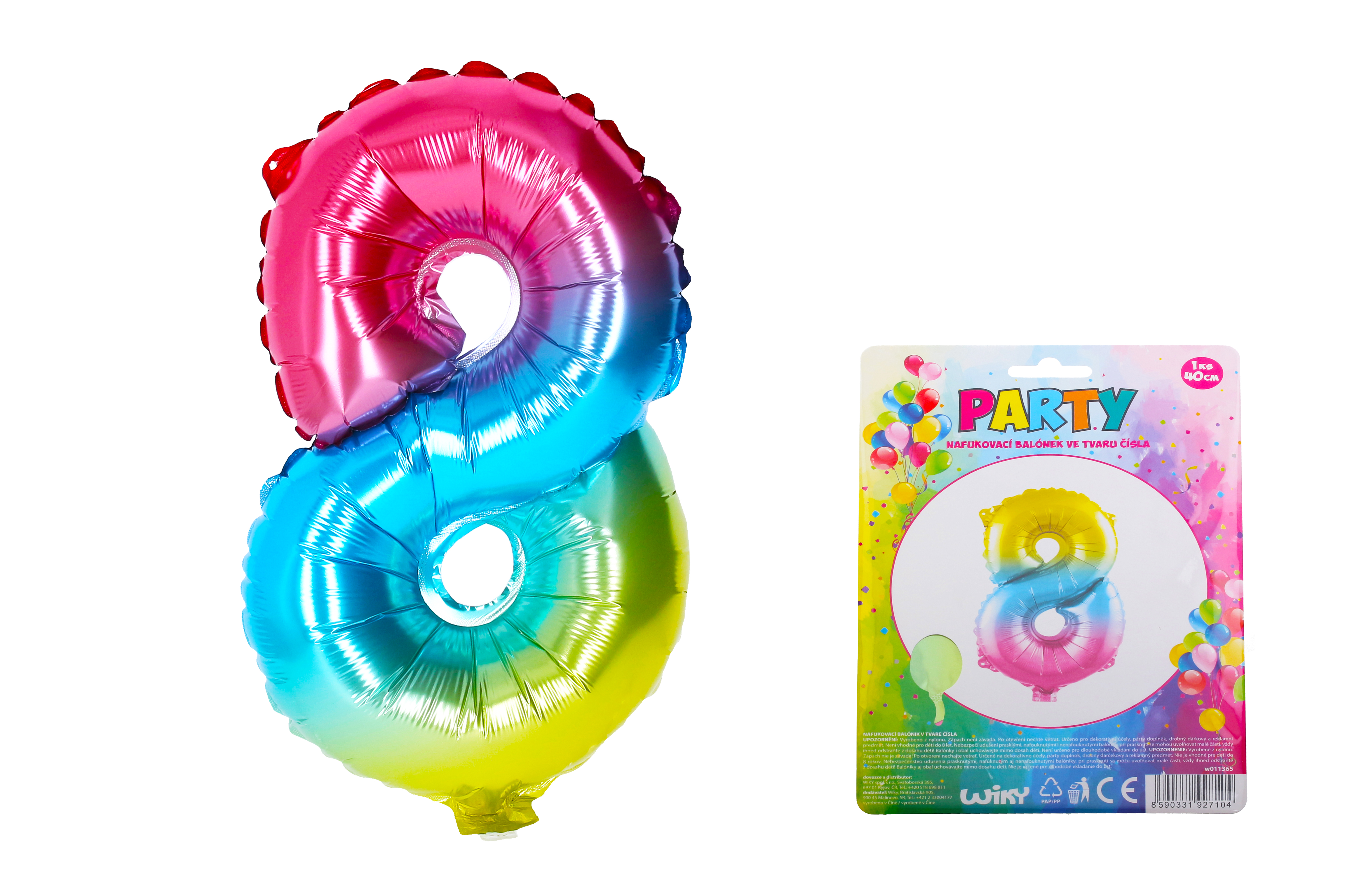 Duhový nafukovací balónek ve tvaru čísla 8 je vhodný jako doplněk na narozeninovou párty!