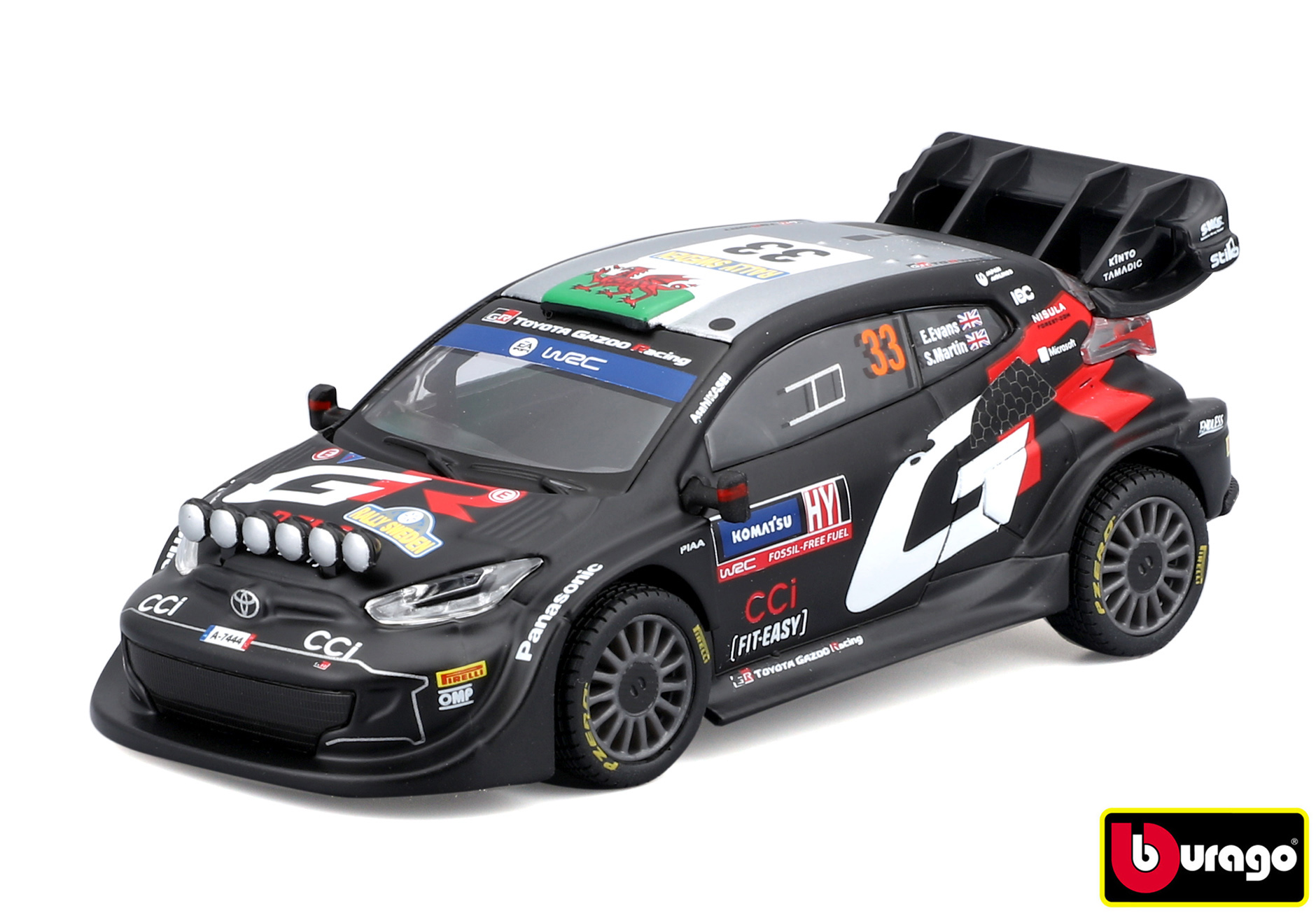 Bburago 1:43 Race Toyota GR Yaris Rally1 Hybrid Nr.33 (Evans) - in decorative box