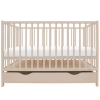 Postýlka je vybavena zásuvkou, která je k postýlce připevněna kuličkovými pojezdy, nedotýká se země. Je možné ji zcela vyjmout a znovu vložit.
