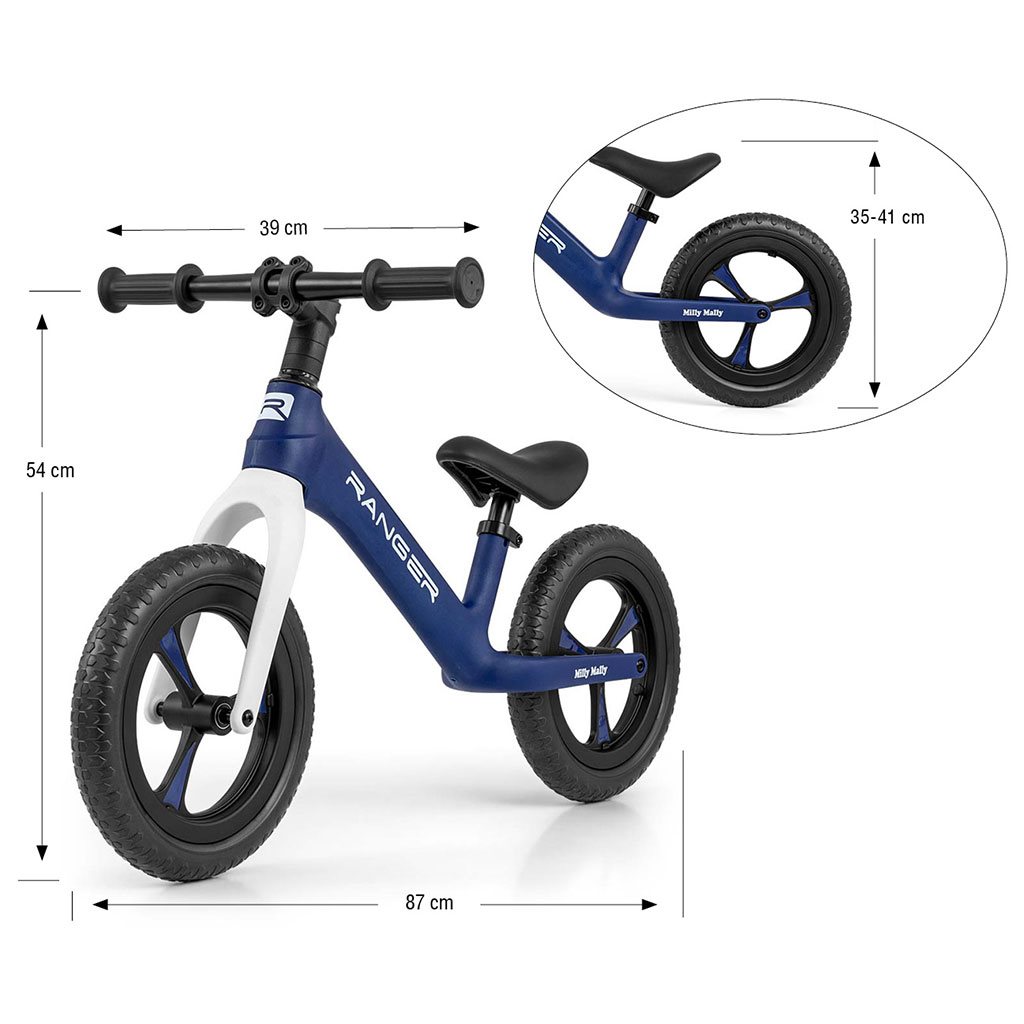 Odolná a vyrobená nejnovější technologií EVA pěny, 12" kola odolná proti propíchnutí, která není třeba nafukovat, jsou bezúdržbová. Ergonomické, výškově nastavitelné sedlo s měkkou výplní zajišťuje dítěti pohodlí při jízdě a roste s dítětem. Kolo Ranger má řídítka v kuličkových ložiskách, rovněž kola s kuličkovými ložisky. Protiskluzové rukojeti z měkké gumy zajišťují pevné uchopení a pohodlné vedení.