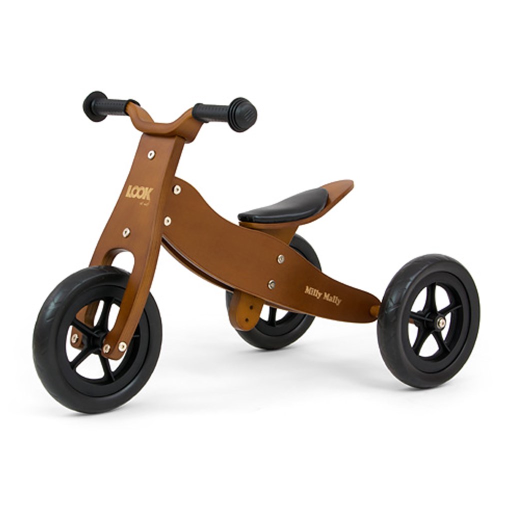 Dětské multifunkční dřevěné odrážedlo Milly Mally Look 2v1 je ideálním řešením pro děti, které se právě začínají učí jezdit na kole a přitom ještě nejsou schopné udržet rovnováhu na dvou kolech. Hlavní výhodou odrážedla Look je, že tříkolku snadno a rychle předěláte na odrážedlo na dvou kolech. Je vyrobeno z pevného dřeva a ozdobeno krásnými veselými barvami a obrázky. Pěnová kola zajistí pohodlí během jízdy a neunaví vašeho malého závodníka. Dostatečný rozvor kol poskytuje extrémní stabilitu, bezpečnost a pohodlí doma i venku. Měkké a neklouzavé rukojeti zajistí pevné držení řídítek. Nastavitelná výška sedadla umožní přizpůsobit odrážedlo potřebám dítěte. Krásné multifunkčí odrážedlo padne do oka jak holčičkám tak chlapečkům a skvěle je připraví pro jízdu na kole bez nutnosti montáže bočních koleček.