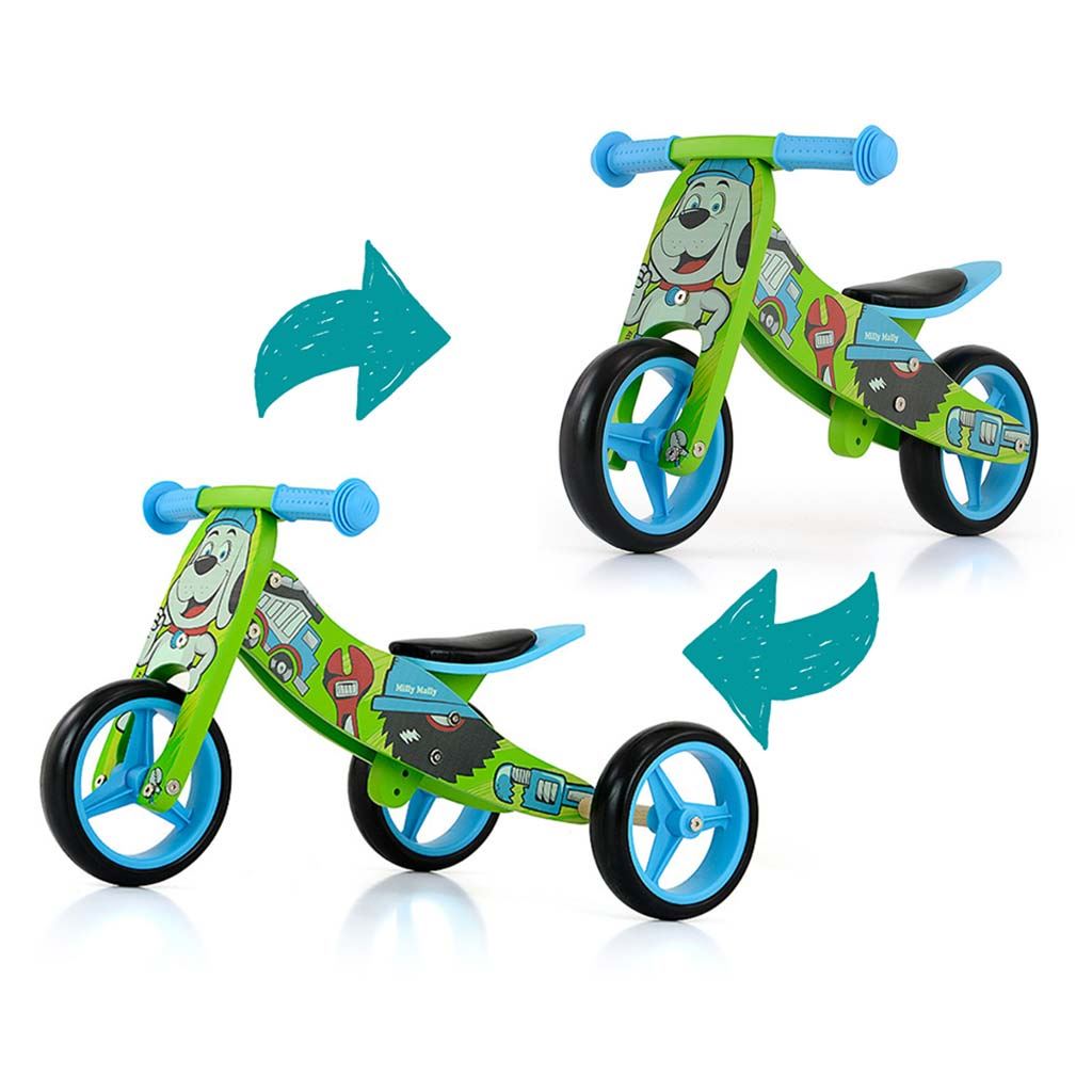 Dětské multifunkční dřevěné odrážedlo Milly Mally JAKE je ideální pro děti, které se právě začínají učí jezdit na kole a přitom nejsou schopné udržet rovnováhu na dvou kolech. Výhodou odrážedla JAKE je, že z tříkolky se snadno stane odrážedlo na dvou kolech. Je vyrobeno z pevného dřeva s krásnými veselými barvami, obrázky s pěnovými koly. Široké rozestupy kol poskytují extrémní stabilitu, bezpečnost a pohodlí doma i venku. Měkká neklouzavá rukojeť zajistí ochranu ruky dítěte. Krásné multifunkčí odrážedlo, které padne do oka jak holčičkám tak chlapečkům.