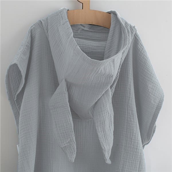 Dětské mušelínové pončo New Baby Feeling. Stylové pončo nejen na doma, ale i na plavání u bazénku, nebo u vody. Mušelínové pončo je díky materiálu lehké, vzdušné a krásně savé. Pončo bude chránit dítě před chladem a poslouží i jako jemná osuška. Díky volnému jedinečnému střihu a roztomilým ouškám udělá dětem velkou radost. Svým střihem s děťátkem poroste a padne na každou postavu. Vypadá skvěle a lze využívat po celý rok. Pro snazší oblékání a svlékání jsou na boku cvočky. Tím vznikne možnost provést otvor na ruku, nebo nechat střih volný. Složení: mušelín-100% bavlna. Rozměr: 50 cm bez kapuce, šířka: 59 cm.