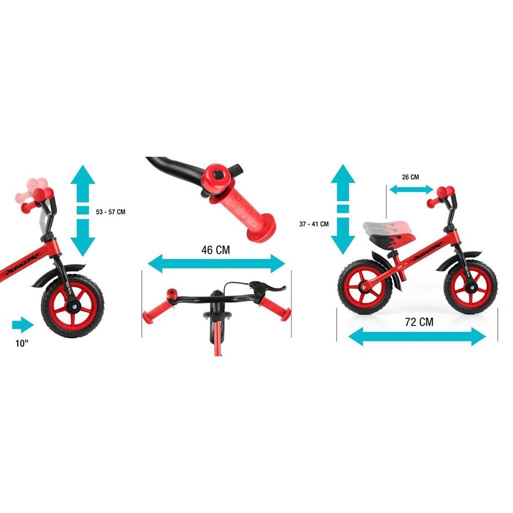 Dětské odrážedlo-kolo Milly Mally Dragon je ideální, když se dítě učí udržet rovnováhu. Je tou nejlepší alternativou pro kolo s bočními kolečky, takže pozdější jízda na klasickém kole bude mnohem jednodušší. Kolo je bez pedálů, díky čemuž se dítě dokáže soustředit hlavně na držení rovnováhy a směr jízdy. Má brzdu, pohodlné sedadlo a pevný kvalitní rám.