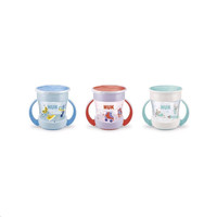 Dětský hrníček Mini Magic NUK 360° s víčkem. Revoluční uzávěr umožňuje pít bez náustku či brčka z každé strany, díky čemuž se dítě učí samo pít jako z normálního hrníčku. Tréninkový hrníček s 360°s pitným okrajem, odolný proti vylití pomáhá dětem učit se pít z velkého hrnku bez toho aniž by se polily. Trénuje dětské svaly, které se potřebují vyvinout. Nápoj začíná téct až po stlačení uzávěru dětskými ústy, takže se nemusíte bát, že se tekutina z hrníčku vylije. Ideální na cesty či výlety. Určeno pro děti od 6 měsíců. Neobsahuje BPA. Charakteristika: