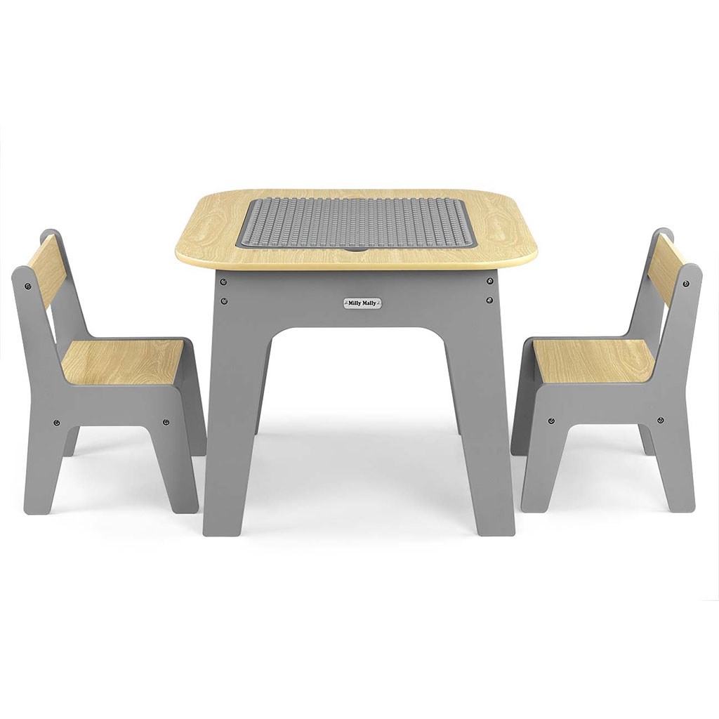 Dětská sada nábytku Olaf Blocks - stůl a dvě židličky je multifunkční komplet navržený tak, aby zajistil dětem pohodlí a prostor pro kreativní hraní a učení. Stůl s dvěma židličkami má decentní barevné provedení, které mu dodává moderní a estetický vzhled, hodící se do každého interiéru.