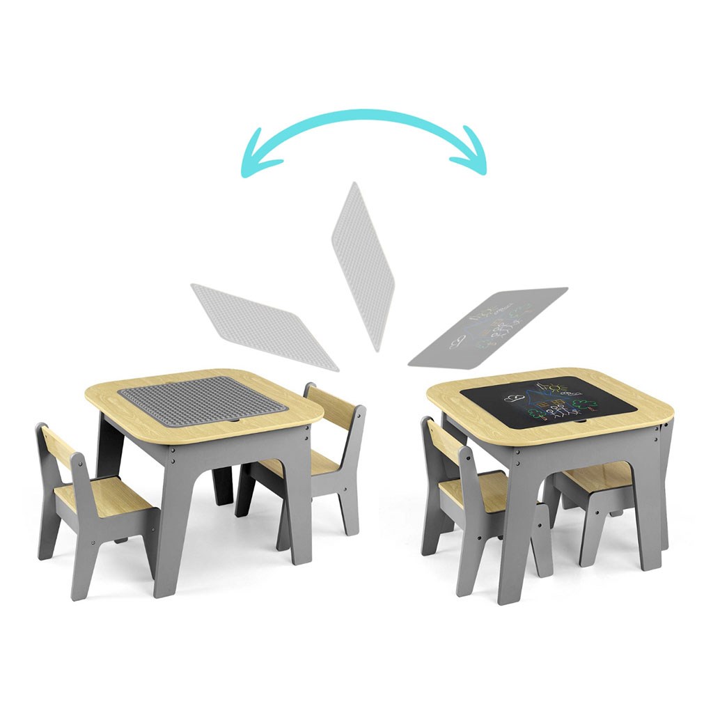 Set Olaf Blocks vyniká jedinečnou deskou stolu – jedna strana je přizpůsobena pro stavební kostky, což z něj činí ideální základnu pro stavění. Druhá strana je hladká a perfektní pro kreslení, psaní nebo jiné výtvarné aktivity. Deska je odnímatelná a pod ní se nachází prostorný úložný prostor, který usnadňuje ukládání hraček, kostek nebo výtvarných potřeb, což pomáhá udržovat pořádek.