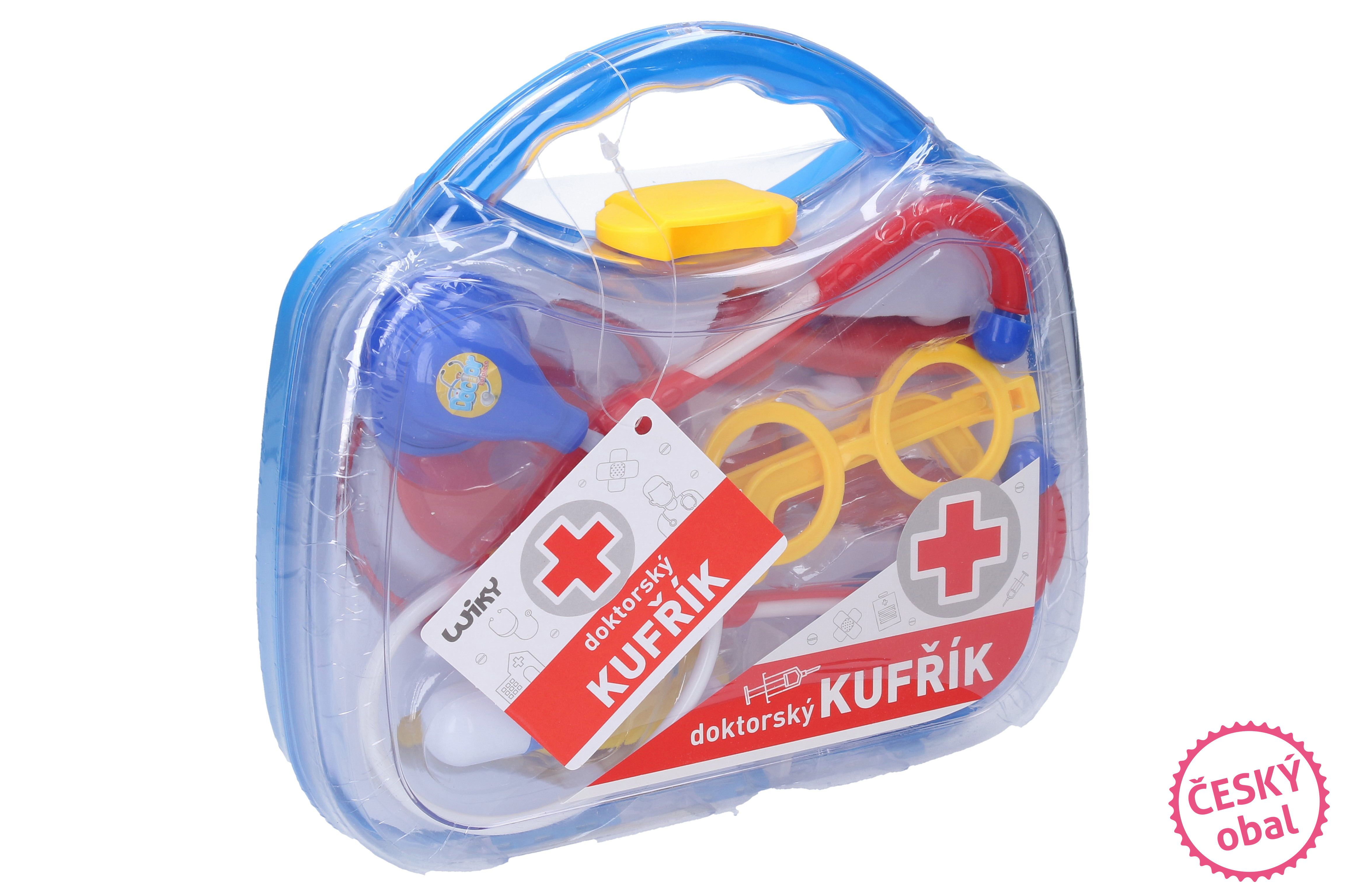 V kufříku najdeš stetoskop, brýle, injekční stříkačku, teploměr, tabletky a mnoho dalších nezbytných doplňků pro správného doktora!