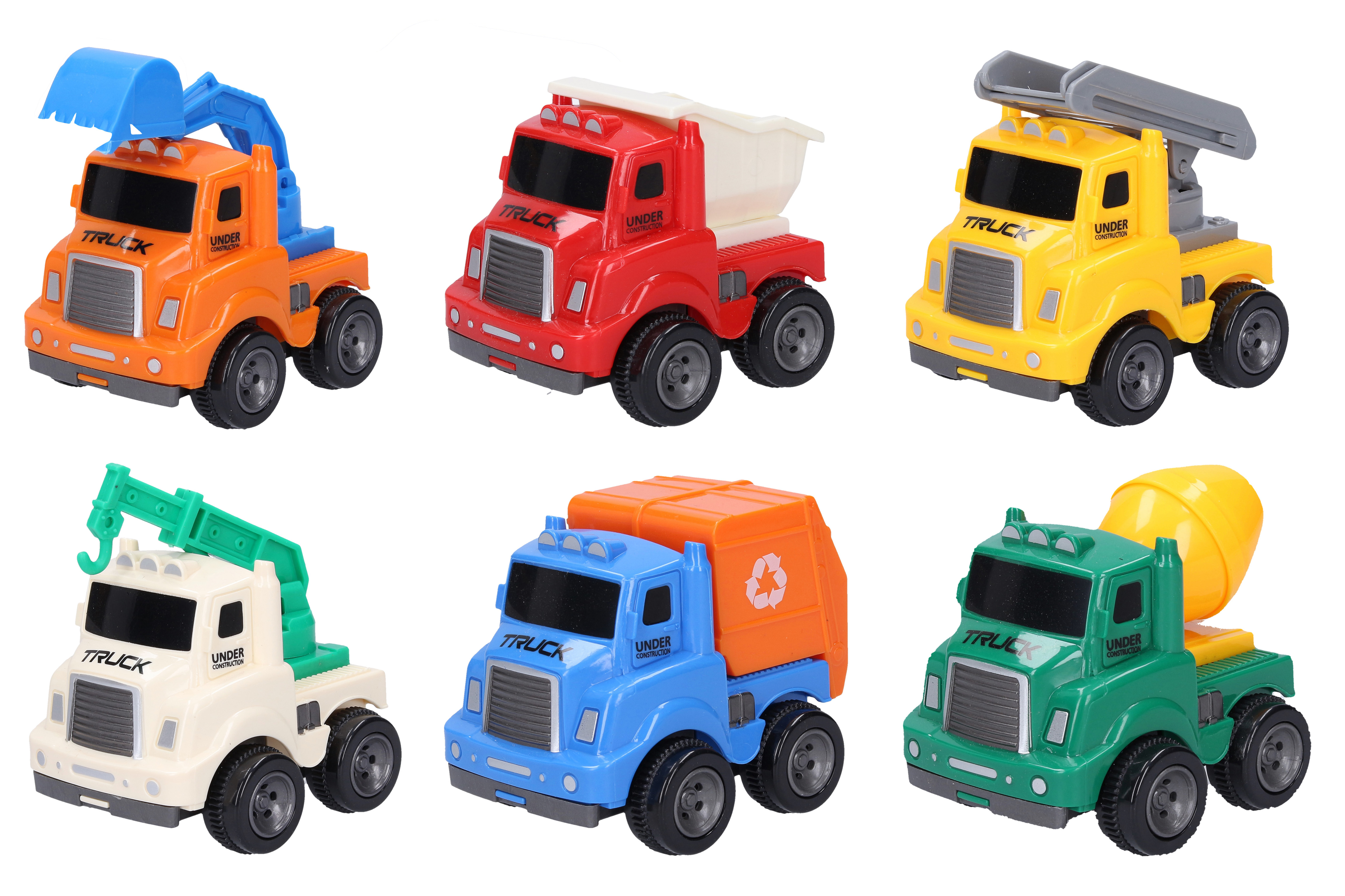Plastové dopravní prostředky jezdí na zpětné natažení a upoutají svým roztomilým vzhledem.