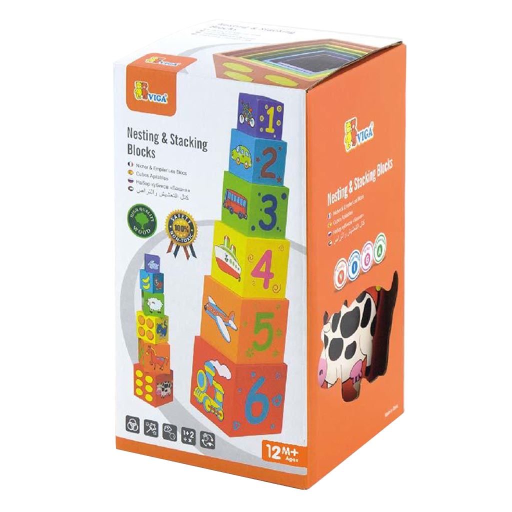 Dřevěná edukační pyramida Viga je jednou z nejlepších hraček, která vydrží dlouhou dobu a dává vašemu dítěti mnoho let zajímavé a tvůrčí hry. Sada obsahuje 6 kusů barevných dřevěných kostek v různých velikostech, které jsou z jedné strany otevřené a proto pěkně zapadají do sebe. Tato fantastická hračka funguje jako didaktická pomůcka. Kostky jsou zdobené krásnými obrázky zvířátek, geometrických tvarů, čísel, barev a přírody. Kostky slouží jako motorická pomůcka, která děti učí zacházet s kostkami. Hračka pomáhá zlepšit manuální zručnost a obratnost, učí dítě rozpoznat tvary a barvy, zapojuje a rozvíjí smysl pro pozorování. Hračka je vyrobena z lakovaného dřeva. Naší prioritou je bezpečnost a kvalita našich výrobků, a proto barvy použité na hračkách nejsou toxické a splňují bezpečnostní standardy (EN71 a ASTM). Pro děti od 12 měsíců. Hračka je vhodná jako krásný dárek pro naše nejmenší. Rozměry hračky: 22x12x12 cm