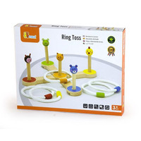 Rozkládací hra na házení kroužků. Dva způsoby spojení dvou základních desek pro větší zábavu při společné hře. Obsahuje 2 základní desky, 5 kolíků s různými roztomilými zvířátky a 5 kroužků s korálky v různých barvách.