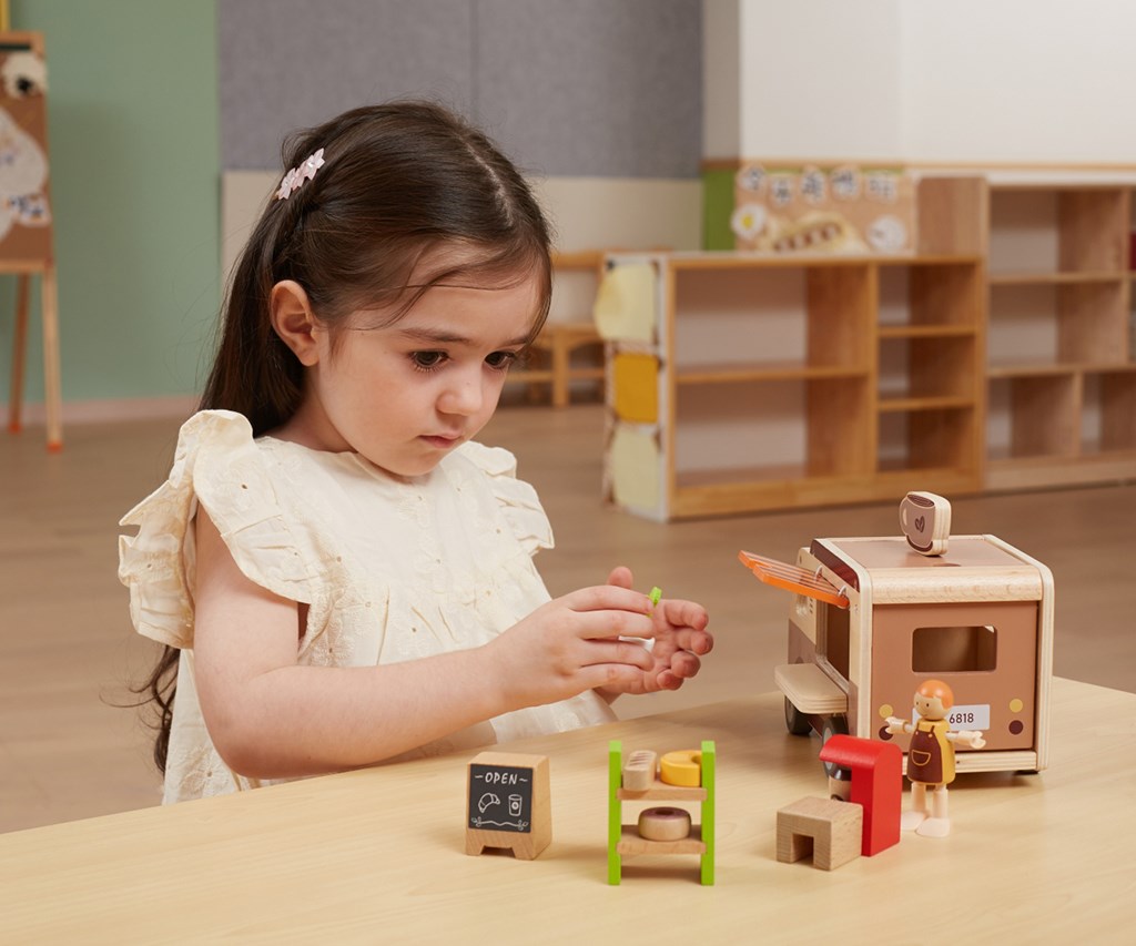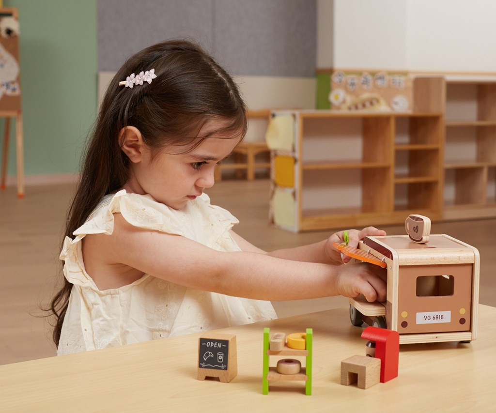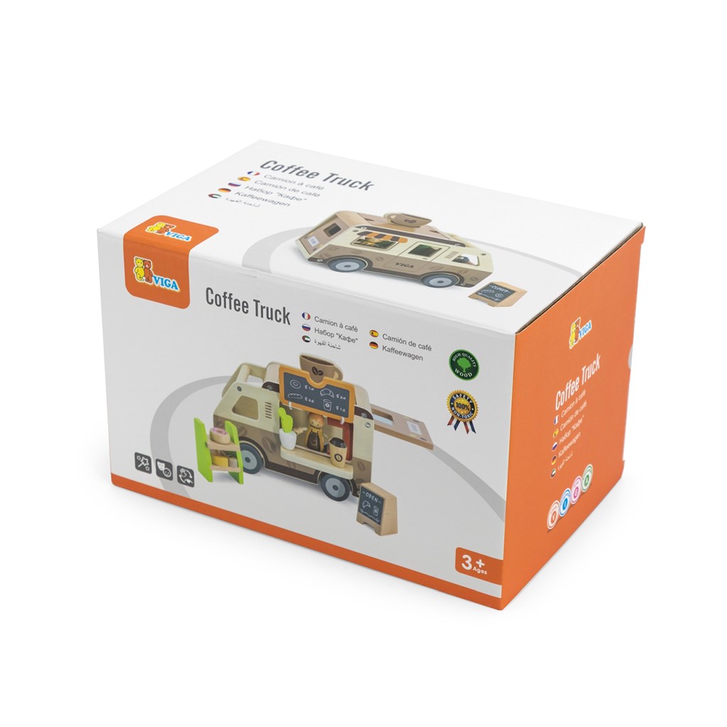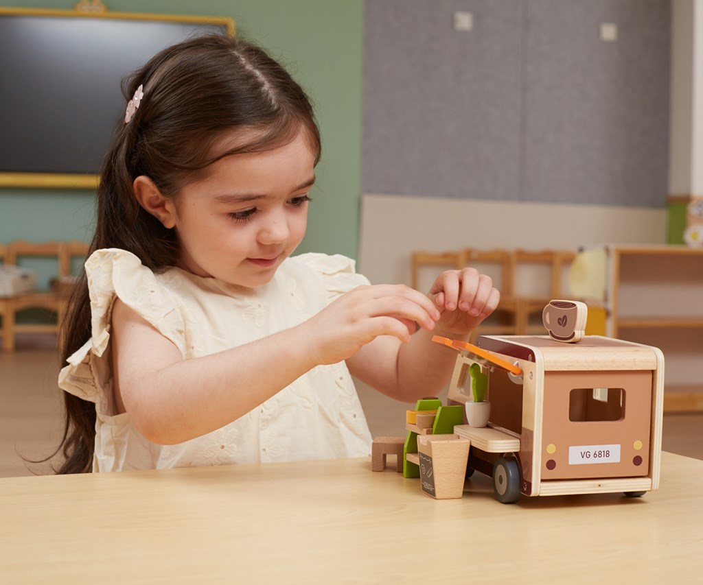 Pevná dřevěná konstrukce a jemné pastelové barvy nanesené netoxickými barvami činí hračku nejen esteticky příjemnou, ale i bezpečnou pro nejmenší. Sada je navržena s ohledem na rozvoj představivosti, manuálních dovedností a sociálních schopností dětí a nabízí mnoho hodin kreativní zábavy. Perfektní pro děti, které milují dobrodružství a sní o vlastní mobilní kavárně na kolech.