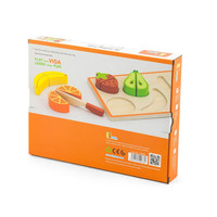 Sada na kríjení od společnosti Viga je ideální hračkou, která podněcuje dětskou představivost. Při společné hře bude moci každý rodič své dítě naučit, jak v budoucnu používat ostré kuchyňské doplňky. Jako bonus jsou všechny výrobky spojeny suchým zipem, což umožňuje je opět složit dohromady. Celá sada je vyrobena z lakovaného dřeva a natřena nezávadnými barvami .