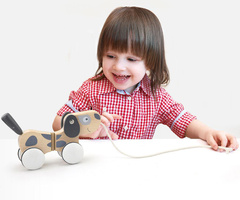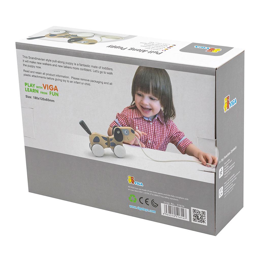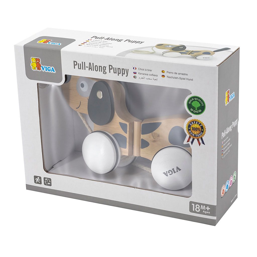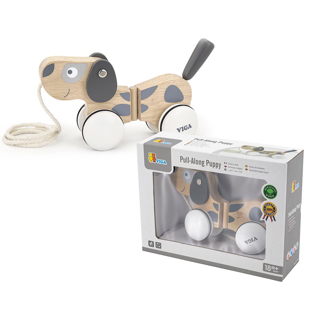 Šedobílý pes na provázku od společnosti Viga se bude hodit jako další pobídka k chůzi pro děti, které se učí dělat první krůčky. Módní a tlumené barvy dokonale obohatí vaši sbírku hraček. Malé štěňátko je dodáváno s vodítkem, které vám umožní vzít ho na procházku po koberci nebo po domě.