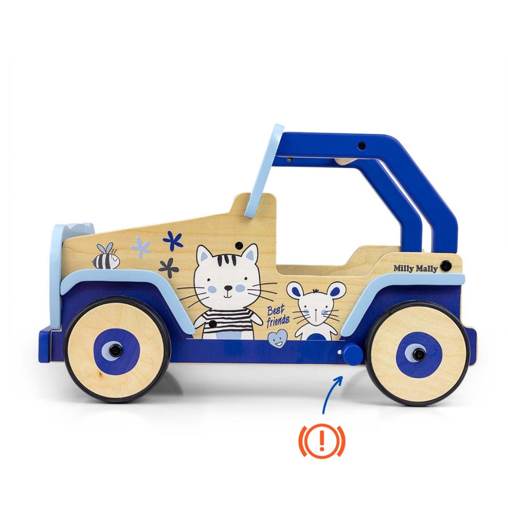Hlavním účelem našeho dětského chodítka Explorer je pomoci vašemu dítěti naučit se chodit. Díky integrované rukojeti a boční opěrce bude vaše dítě méně pravděpodobné, že při prvních krůčcích upadne. Hračka je vybavena brzdou, kterou může rodič v případě potřeby aktivovat k znehybnění vozidla.