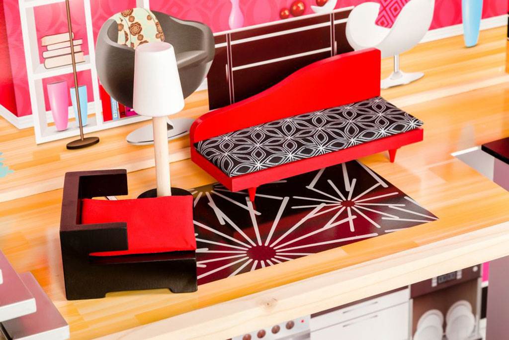 - Sada obsahuje také sadu 10 kusů nábytku, které lze libovolně vyjímat a přeskládat bez omezení.