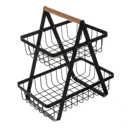 Dvoupatrový koš na ovoce, černý kovový košík na zeleninu do kuchyně, loftový styl
