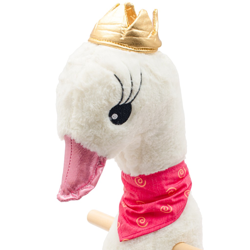 Vestavěná melodie dělá z houpání na labuti ještě větší zábavu, stimuluje sluch dítěte a povzbuzuje ho k aktivní hře. Hračka je také vybavena kolečky, která umožňují pohyb na různých površích a zajišťují bezpečnost a stabilitu.