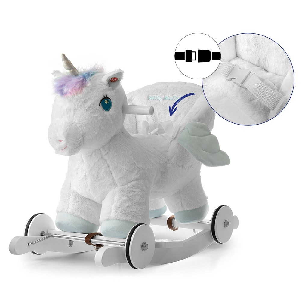 Měkoučký houpací koník Polly byl navržen pro nejmenší děti (12m+), pro které jsou tradiční houpací koníci příliš velcí. Pohodlné, ergonomické sedátko ve tvaru křesílka a nastavitelné pásy zajistí komfort a bezpečí při bezstarostném houpání i přesouvání dítěte.