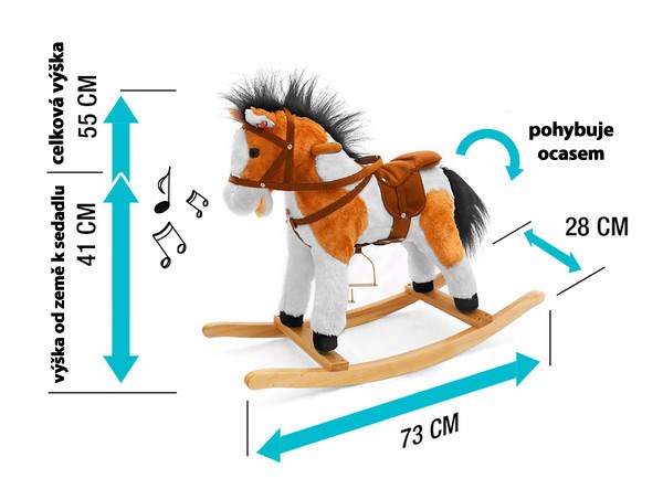 - koník má sedlo s třmeny, uzdu a dřevěné rukojeti