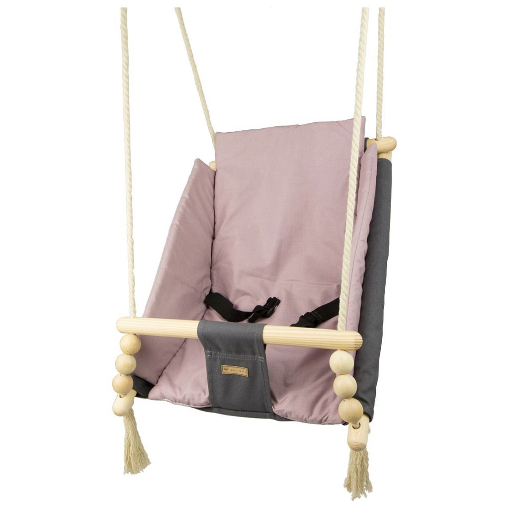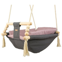 Díky použití bavlny příjemné na dotek se zde dítě cítí útulně, pohodlně a bezpečně. Silná bavlněná lana jsou vybavena kovovými kolečky, která umožní instalaci houpačky také na terasu, verandu nebo na zahradu.