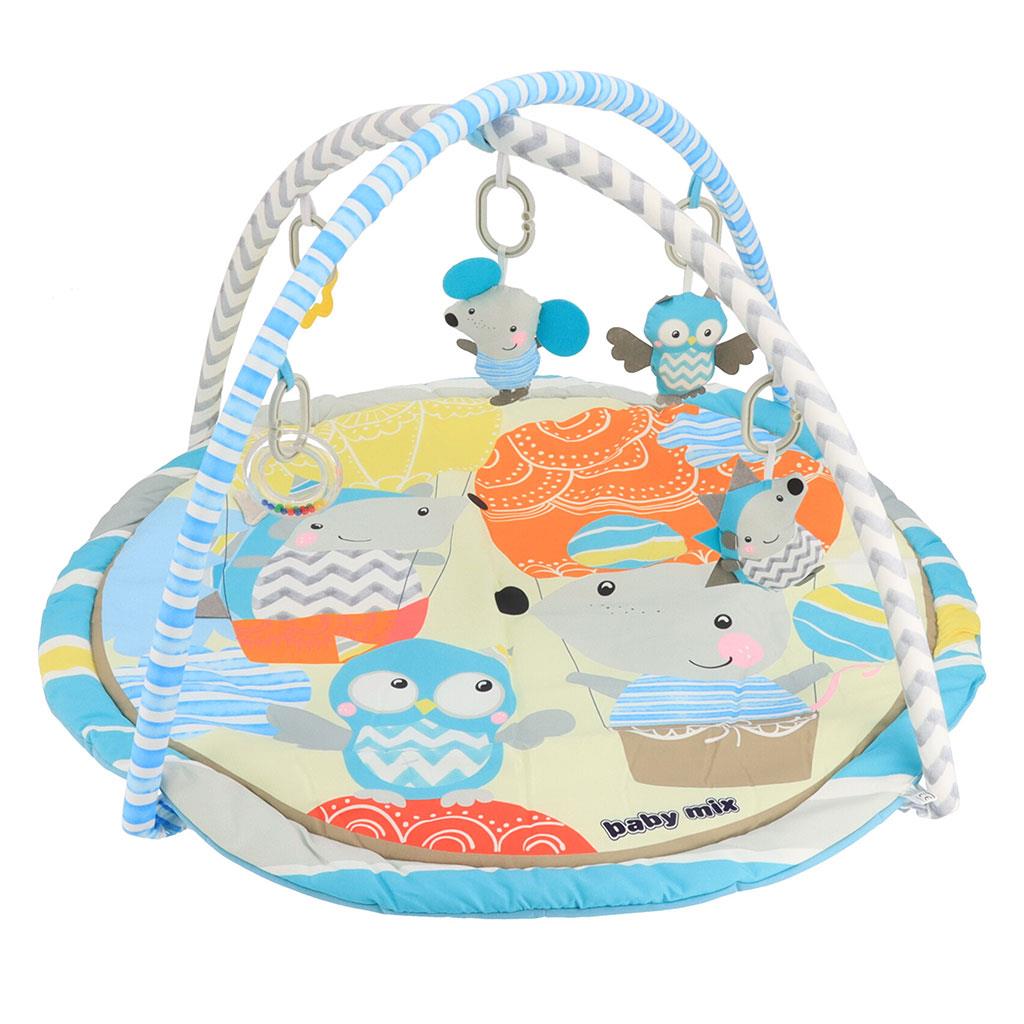 Krásna vzdělávací hrací deka s hrazdou Baby Mix, rozvíjí dětskou představivost díky poznávaní barev a tvarů. Měkká polstrovaná deka se svěžím designem. Díky jednoduché konstrukci a dodávané tašce lze deku lehce přenášet. Zavěšené hračky: chrastítka, pískací hračky. Hrazdičky se dají odepnout, stejně tak jako hračky. Příjemný a měkký materiál umožňuje pohodlné ležení na bříšku nebo zádech a umožňuje svobodu pohybu Vašeho dítěte. Hrací deka poskytuje bezpečné a příjmené prostředí a stane se oblíbeným místem pro vaše děťátko.