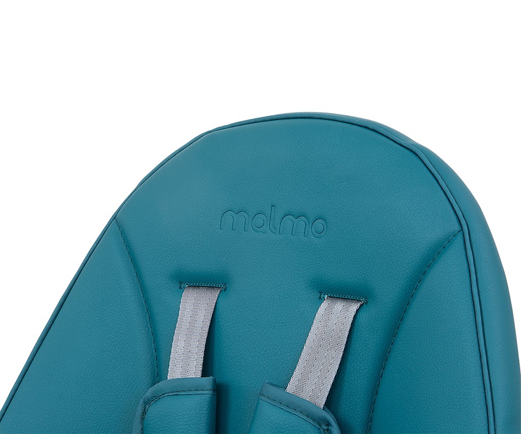 Pětibodové bezpečnostní pásy se širokými a měkkými ramenními vycpávkami chrání dítě před odřeninami. Čalounění židle Malmo z ekokůže je odolné proti znečištění a snadno se čistí. Tác má prohlubeň, která zabraňuje sklouznutí předmětů.