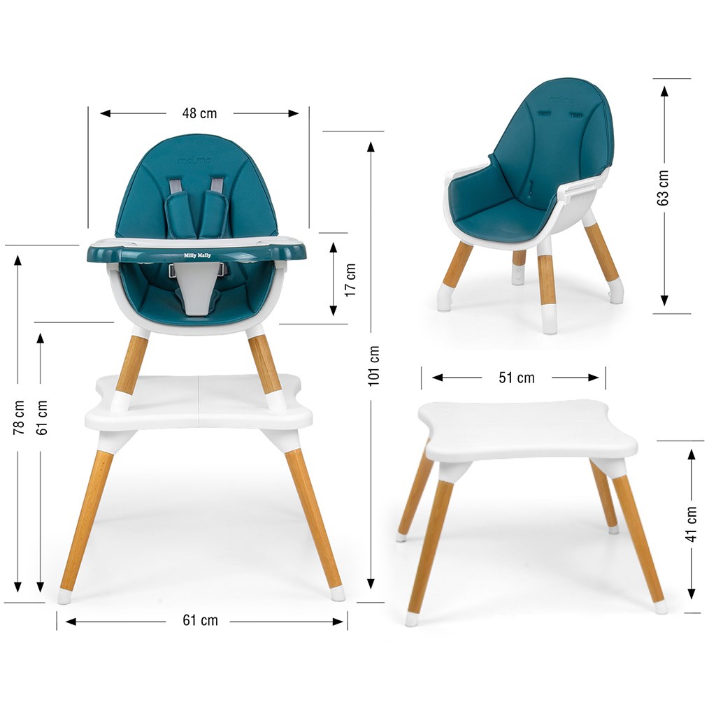 Moderní a stylová dětská jídelní židlička 2v1 Malmo. Je vyrobena z nejkvalitnějších materiálů - kombinuje funkčnost a moderní design. Verze vysoké židle je určena pro děti od 6 měsíců do 36 měsíců nebo při dosažení hmotnosti 15 kg a verze nízké židle plus stůl pro děti od 3 do 6 let nebo při dosažení hmotnosti 25 kg.