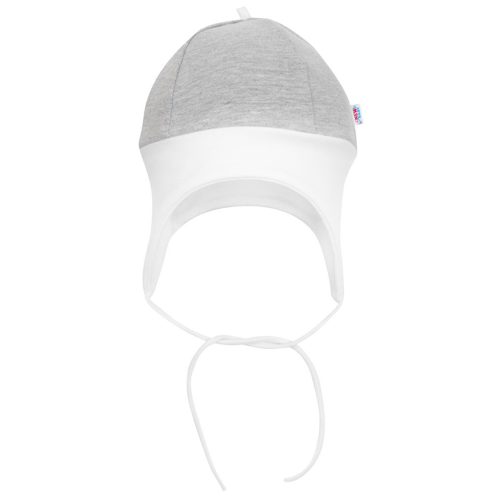 Krásná čepička české značky New Baby The Best. Je vyrobená z pohodlné teplákoviny, ve které se vaše miminko bude cítit velmi příjemně. Má pružný, stahovací lem, který netlačí a bude dobře držet na hlavičce miminka. Je krásně tvarovaná na ouška a zavazuje se na tkaničky. Složení 98% bavlna, 2% elastan.