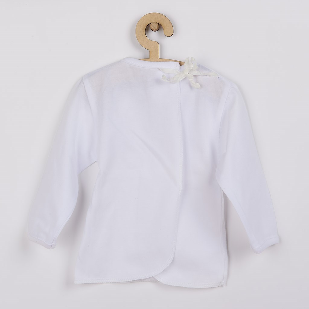 Klasická kojenecká tenká bavlněná košilka, vhodná pro miminka už od narození. Jemná, měkká a kvalitní bavlna nedráždí pokožku dítěte. Košilka je bílá se zavazováním vzadu na tkaničky. Příjemný a kvalitní materiál. Složení 100% bavlna. Rozměr: délka od ramínek cca 25 cm, obvod hrudníků cca 38 cm, délka rukávu cca 20 cm.