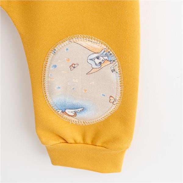 Moderní a praktické tepláčky české značky New Baby Víla. Tepláčky mají v pase širší lem s gumičkou, na nohavičkách širší lem a na kolínkách šmrncovní záplaty s potiskem víl. Komfort při nošení zabezpečí kvalitní materiál. Složení: 95% bavlna, 5% elastan. Do kolekce Víla patří: tričko s krátkým rukávem, body s dlhým rukávem, polodupačky, tepláčky, čepička a kraťasy.