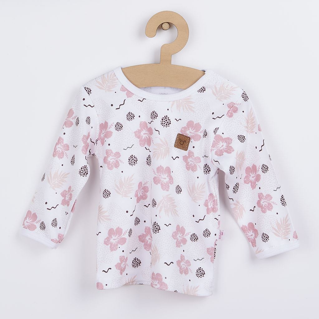 Stylové bavlněné kojenecké tričko s dlouhým rukávem Koala Flowers. Tričko s dlouhým rukávem je zdobeno krásným potiskem. Zapínání na ramínku na cvočky usnadní oblékání. Tričko je vyrobené s ohledem na potřeby malých dětí s velmi příjemného a jemného materiálu. Složení 100% bavlna.