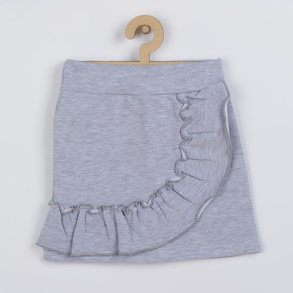 Roztomilá a stylová 2-dílna soupravička pro holčičky české značky New Baby Butterflies. Soupravička se skládá z trička a sukýnky. Tričko s krátkými nařasenými rukávy je zdobeno obrázkem motýlků. Zapínání na ramínku na cvočky ulehčí oblékání přes hlavičku miminka. Šedou melírovanou sukýnku zdobí krásný volánek, který dodává sukýnce ten správný šmrnc. V pase je širší guma, která netlačí na bříško miminka. Soupravička je precizně a kvalitně ušitá a je vyrobená z velmi příjemného materiálu, ve kterém se bude vaše holčička cítit velmi pohodlně. Moderní střih, motýlky, volánky a krásné barvy. To vše najdete na naší soupravičce Butterflies, která je neodmyslitelnou součástí holčičího oblečení. Složení: tričko: 100% bavlna, sukýnka: 95% bavlna, 5% elastan.