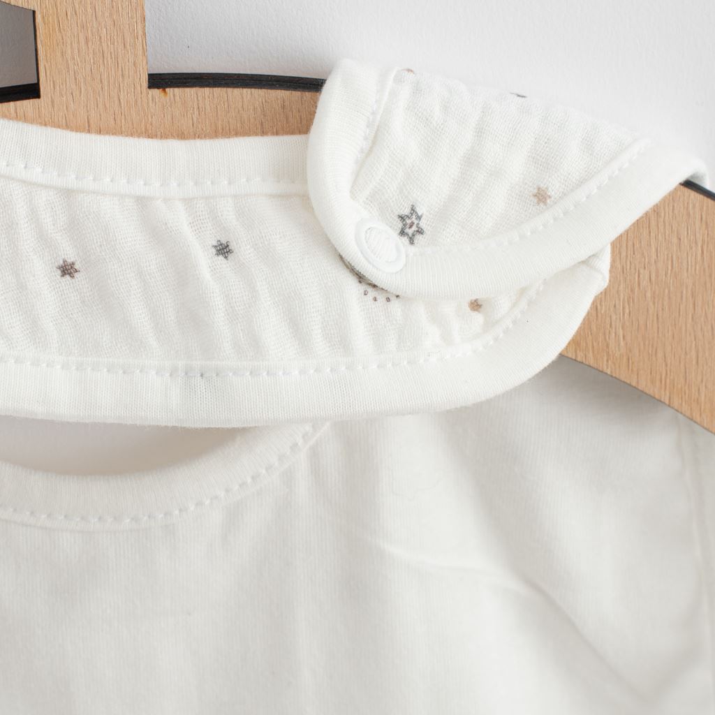 Krásný mušelínový dětský bryndáček české značky New Baby Arthur. Bryndák lze zapnout do 2 velikostí pomocí cvočků. Mušelín je jedna z nejčistších, nejjednodušších a nejjemnějších tkanin na světě. Jemně tkaný prodyšný materiál je tak dokonalý, že si jej zamilují děti po celém světě. Lehká struktura umožňuje mušelínu „dýchat“ a zajišťuje dostatečnou cirkulaci vzduchu, čímž snižuje riziko přehřátí. Tato vlastnost pomáhá udržet Vaše dítě v pohodlí, bezpečí a rodiče v klidu. Mušelín je velmi odolný a to tak, že bez problémů zvládá opakované praní a postupem času je lehčí a jemnější. Rozměr: 25x30 cm. Složení: 100% bavlna. OEKO-TEX STANDARD 100.