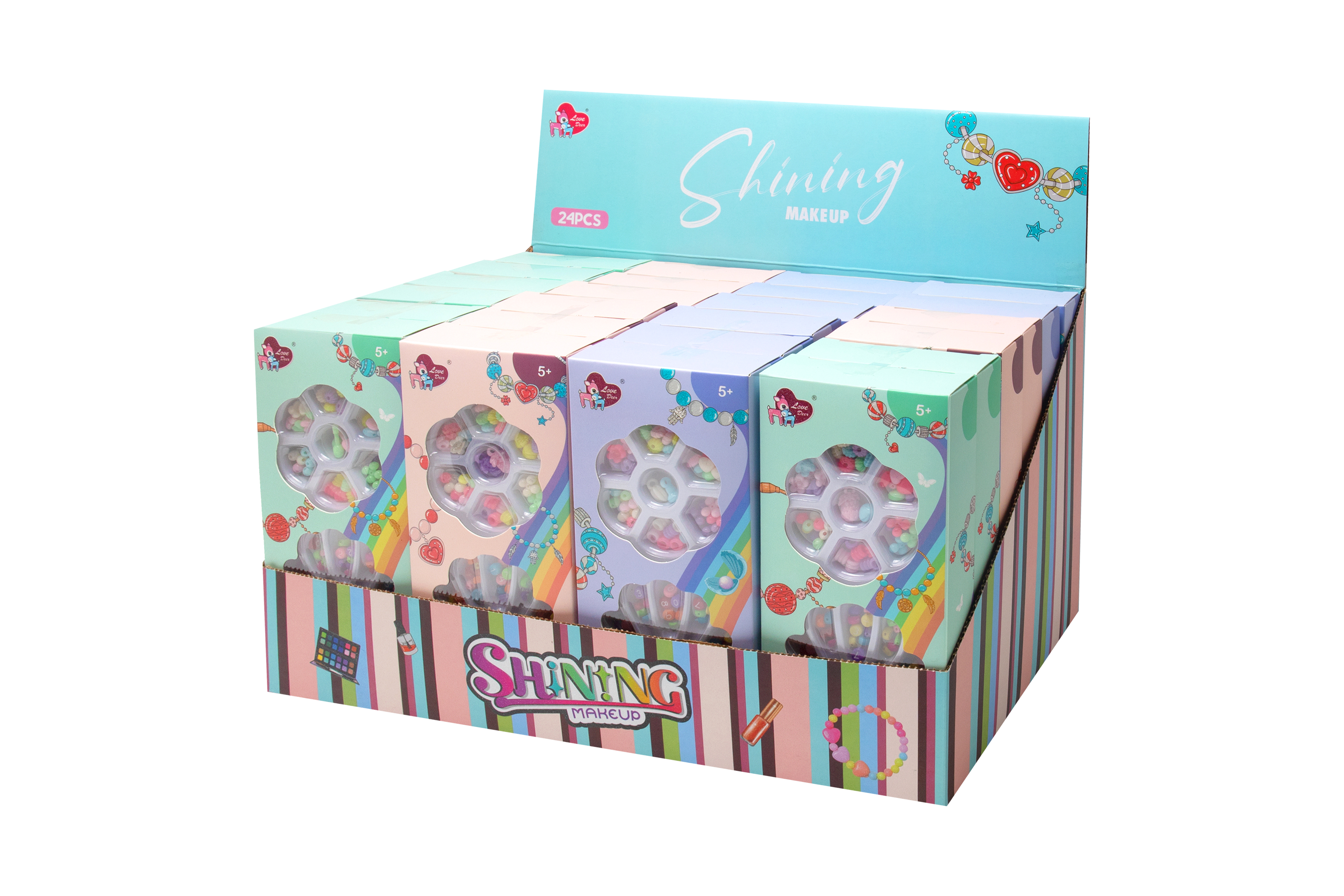 Korálky set na výrobu náramků. Display box 24 ks.