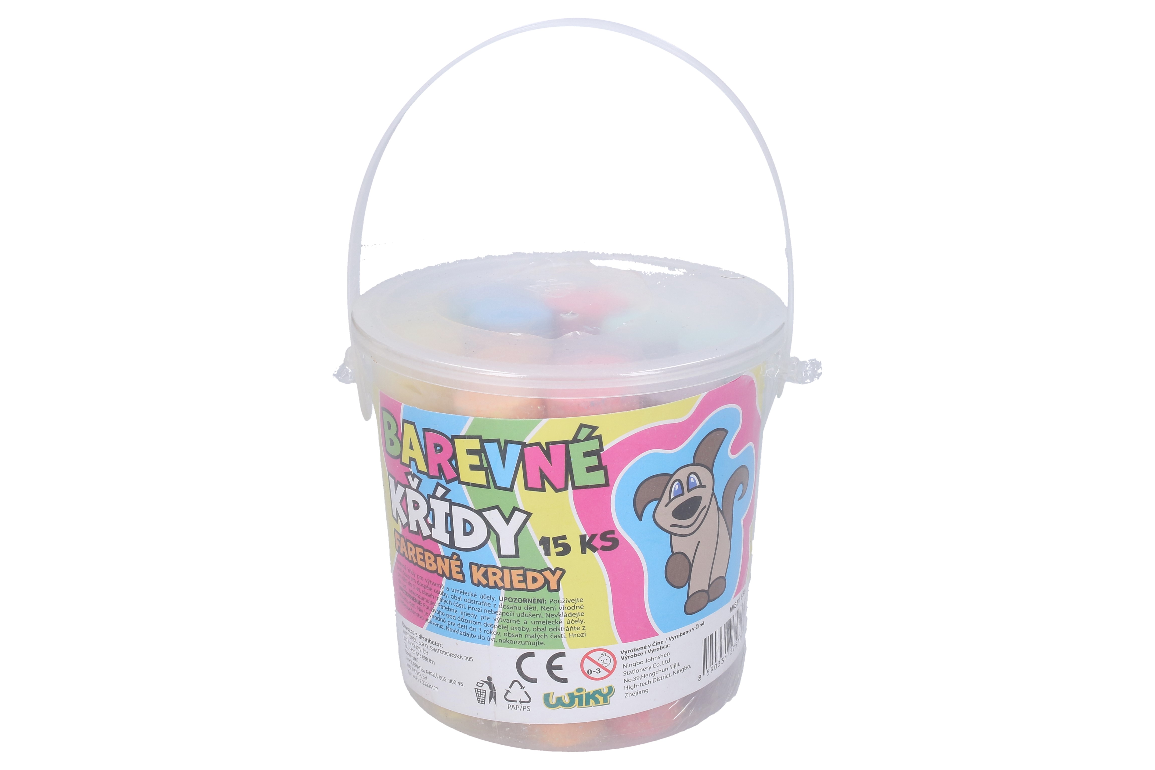 Kulaté barevné chodníkové křídy v kyblíku