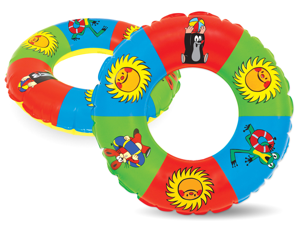 Sluníčko se směje a Krteček se svými kamarády se chystají k vodě. Co ale nesmí zapomenout, je plavací kruh, protože plavat ještě neumí! Nafukovací plavací kruh s Krtečkem a jeho kamarády. Průměr: 51 cm