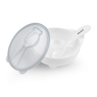 Praktická sada obsahující plastovou misku a lžičku. Speciální víko umožňuje snadnou přepravu jídla a úchyt zjednodušuje držení misky. Ve víku je místo pro plastovou lžičku s krytem, což je velmi praktické při cestování, protože se Vám od špinavé lžičky nic nezašpiní a lžička se neztratí. Určeno pro děti od 4 měsíců. Neobsahuje BPA. Určeno pro použití v mikrovlnné troubě. Lze mýt v myčce nádobí.