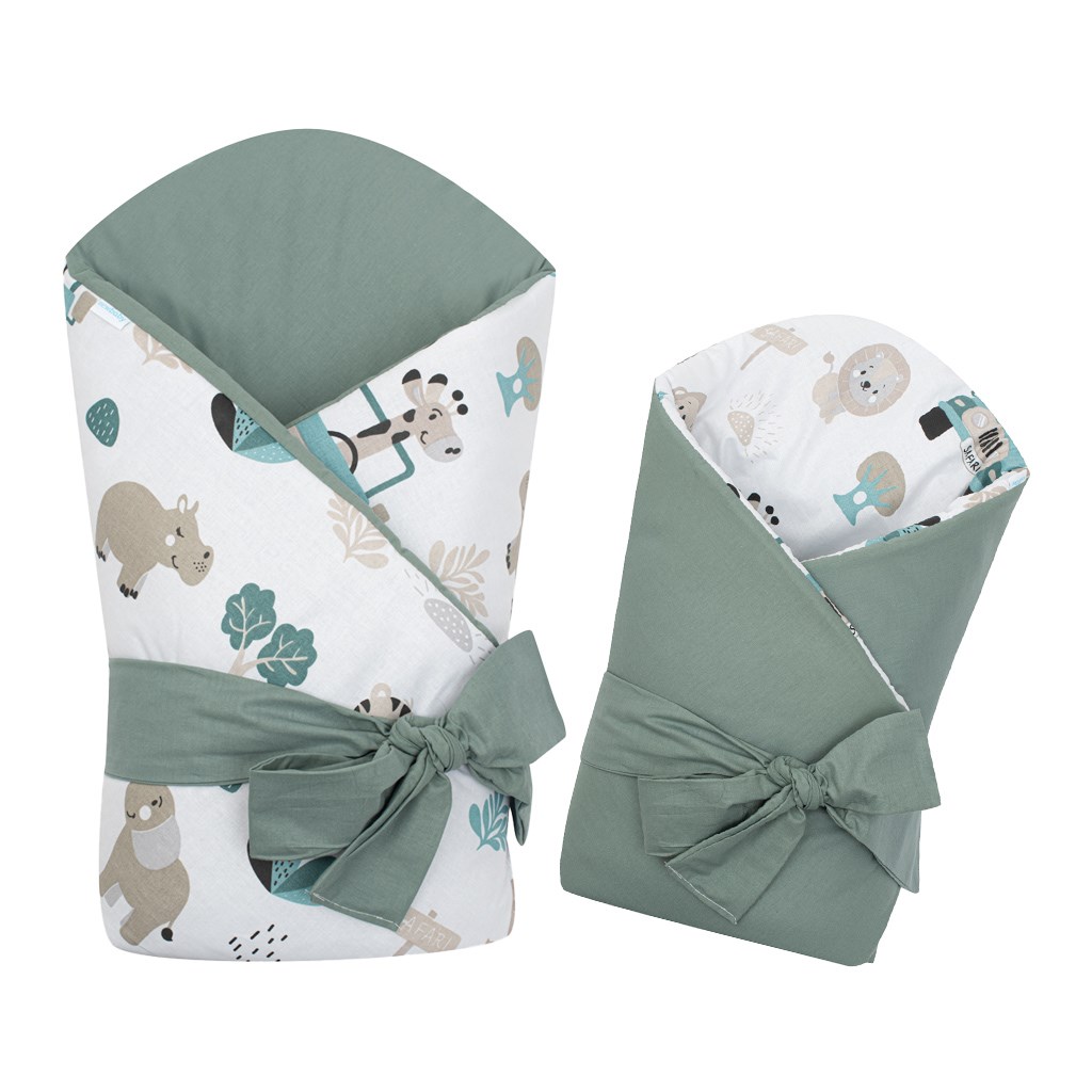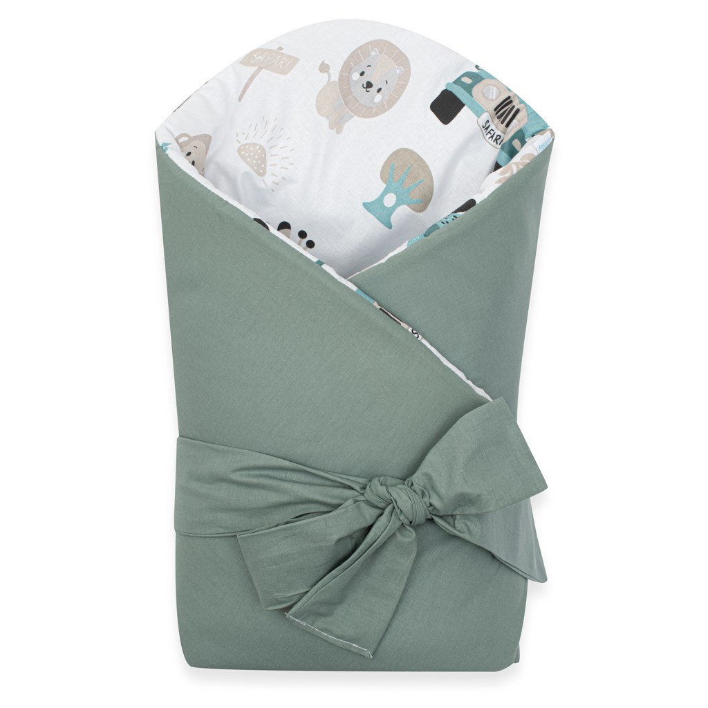 Nádherná dětská oboustranná zavinovačka české značky New Baby Safari pro miminka. Zavinovačka je vyrobena z kvalitního a jemného materiálu, který zaručí vašemu miminku příjemné teplo. Výplň je až 3 cm co znamená, že zavinovačka je vhodná i na chladnější dny a je dostatečně pevná. Krásný dětský motiv, polahodí dětským očičkám. Zapínání na suchý zip i pásek na zavázaní na mašli.