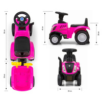 Multifunkčnost pojízdného vozítka zajistí, že dítě rychle neomrzí a hrou bude rozvíjet své manuální dovednosti a motoriku. Traktor má přívěs s hráběmi a lopatou. Upevnění přívěsu zabrání automatickému odpojení. Další výhodou je interaktivní volant s klaksonem, který v kombinaci se zvukovými a světelnými prvky učiní zábavu ještě zajímavější!