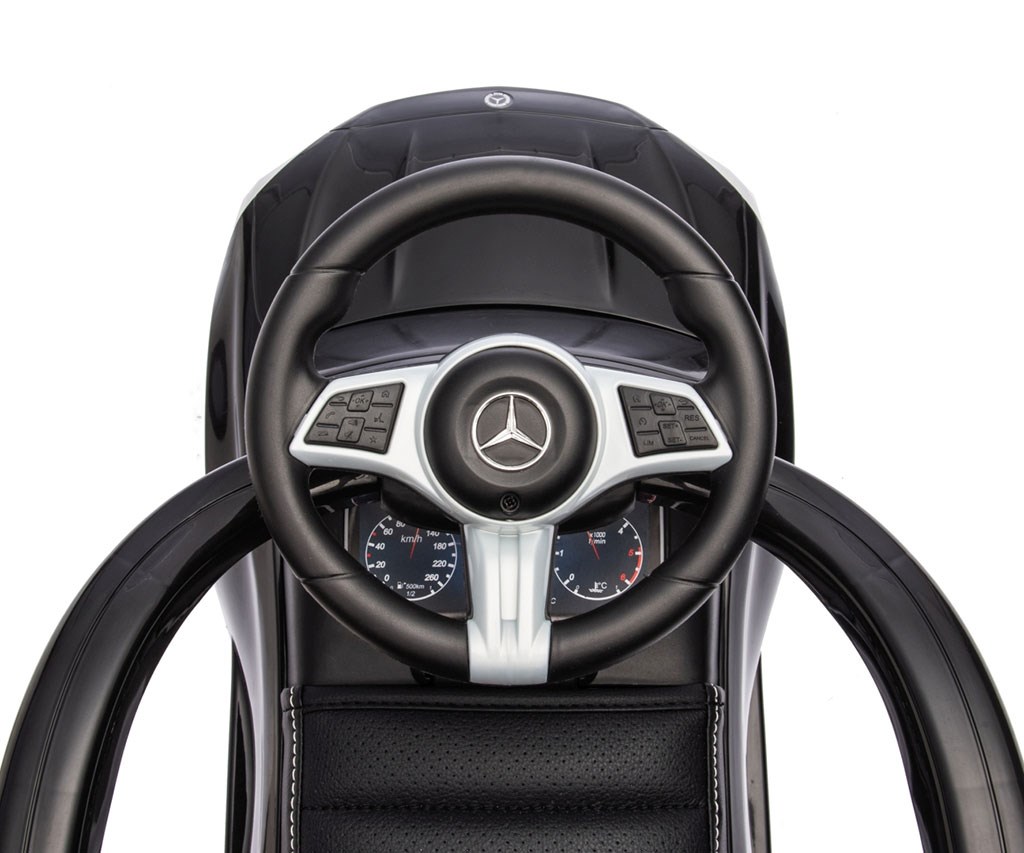 Realistický design inspirovaný modelem Mercedes C-Class zaujme detaily jako elegantní provedení, gumová kola, logo značky, volant se zvuky a "přístroje," což podporuje dětskou představivost a umožňuje kreativní hru.