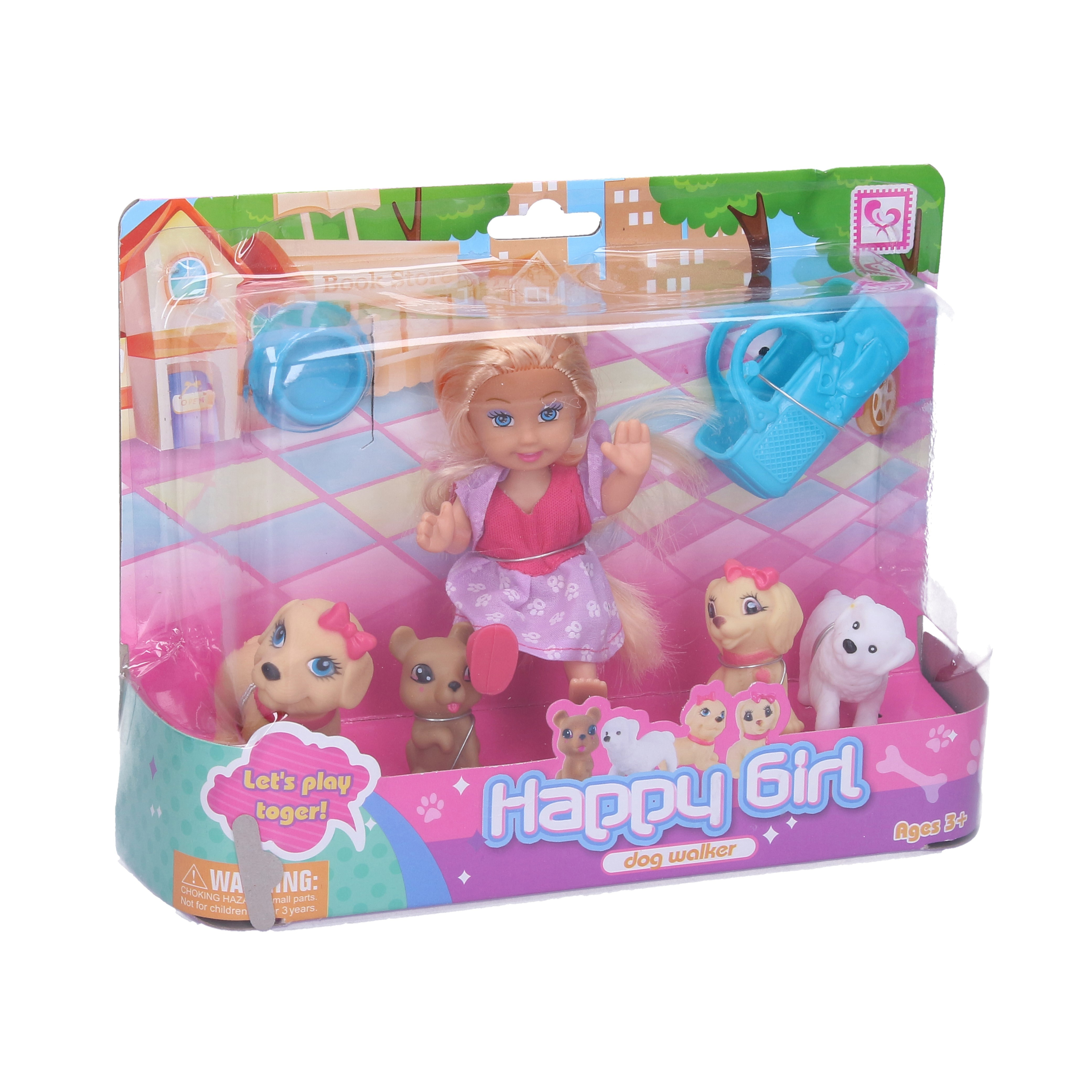 Partička roztomilých pejsků a panenka k tomu! Není to paráda? Postarej se společně s panenkou o psí rodinku! Vem je na procházku do parku, kde si užijete slunečný den! V balení najdeš taštičku a misku na vodu.