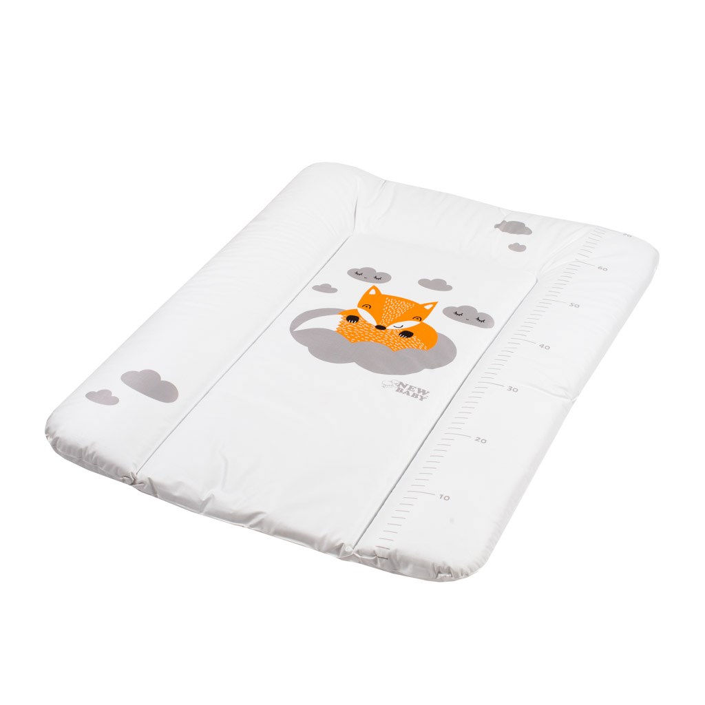 Praktická tvarovaná přebalovací podložka s moderním dizajnem New Baby Liška z nepromokavého, plastového materiálu s obrázkem lišky a obláčků. Produkt české značky. Podložka je vyplněna polyesterem a lze jí použít na komodě či jiném místě k přebalování, díky nízké váze je mobilní. Je vyrobena z nejkvalitnější certifikované fólie, která neobsahuje žádné škodlivé látky a je citlivá k nejjemnější dětské pokožce. Rozměr: cca 70x50 cm, tloušťka cca 4 cm.