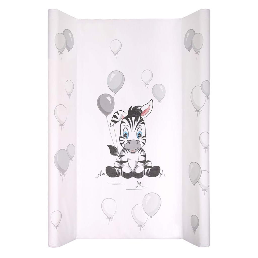 Praktická tvarovaná přebalovací podložka New Baby z nepromokavého, plastového materiálu s obrázkem zebry v příjemných pastelových barvách. Podložka je vyplněna polyesterem, má vyvýšené boční strany a lze jí použít na komodě či jiném místě k přebalování, díky nízké váze je mobilní. Je vyrobena z nejkvalitnější certifikované fólie, která neobsahuje žádné škodlivé látky a je citlivá k nejjemnější dětské pokožce. Bez tvrdého podkladu. Rozměr: cca 50x80 cm, tloušťka cca 2 cm, výška hran 8 cm.