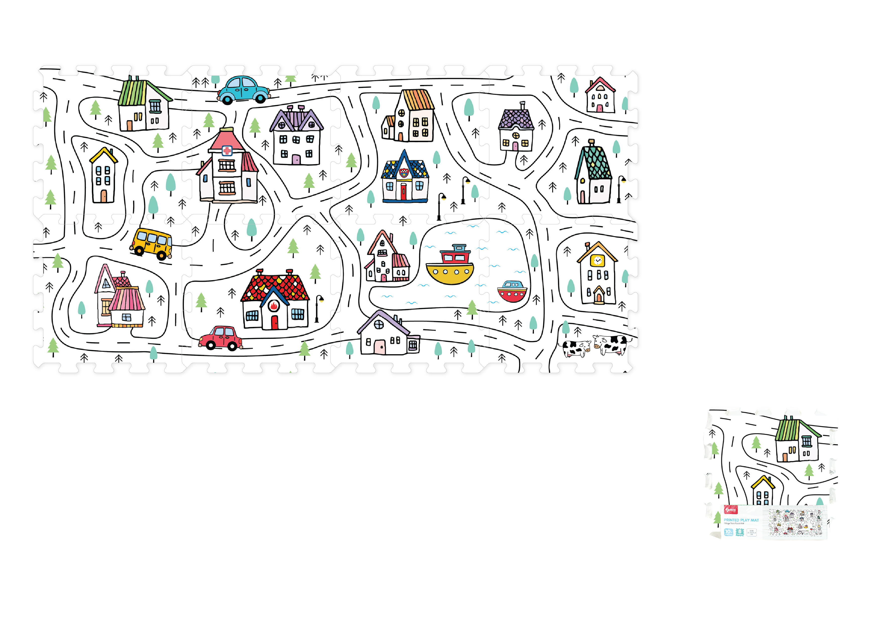 Puzzle pěnové město 8ks. Velikost 31,5x31,5 cm, tloušťka 1 cm.