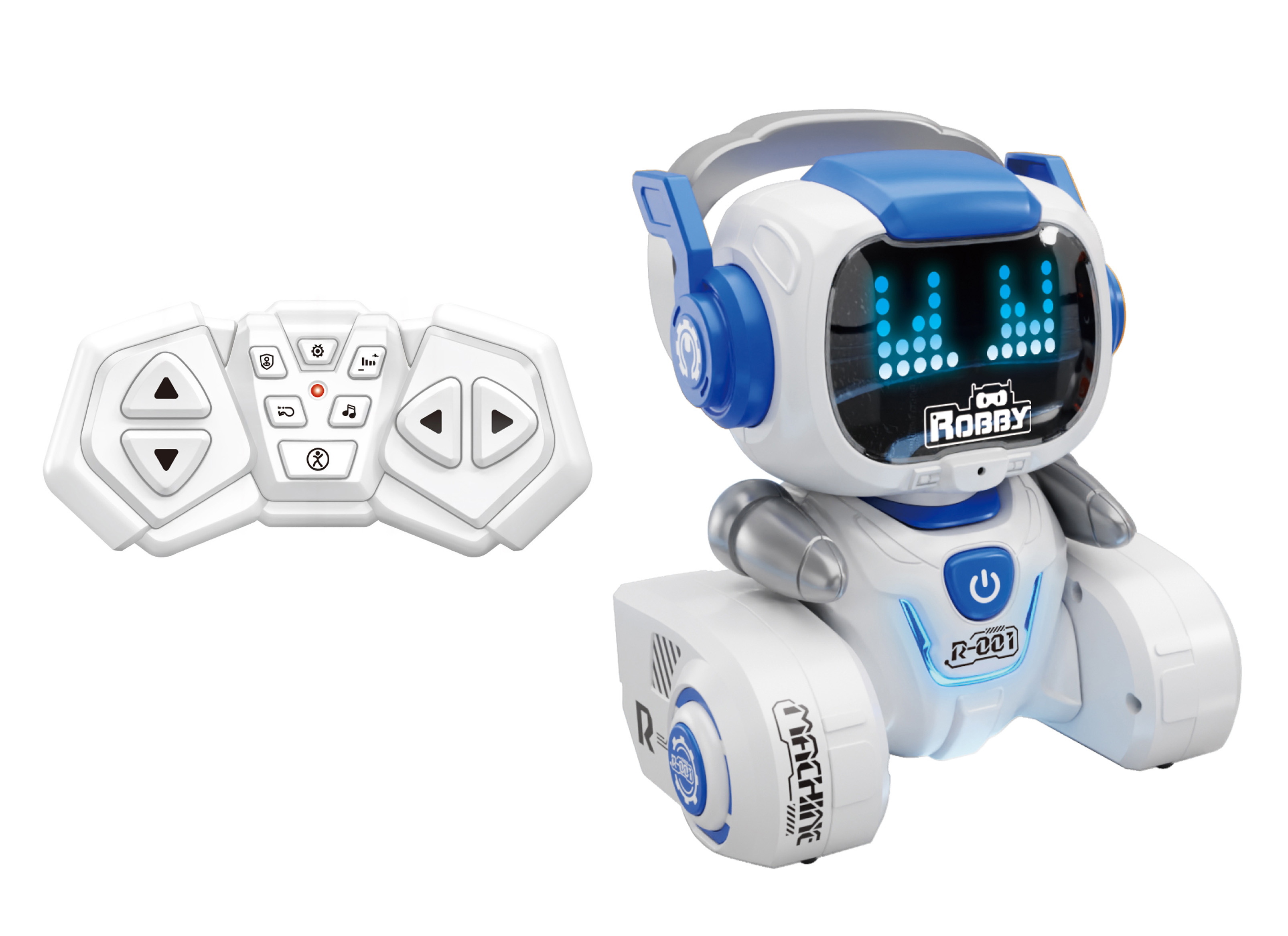 Robot Robby RC na dálkové ovládání. Rozměry 13x9x15 cm. Frekvence 2.4GHz. Světelné a zvukové efekty. Bateriový pack 3.7V 350mAh Lithium do robota součástí, 2xAAA do ovladače nejsou součástí. USB kabel součástí. Ovladač - pohyb dopředu a dozadu, otáčení vlevo a vpravo, tanec, programování, ovládání hlasitosti, demo režim, zvukové efekty (hudba).