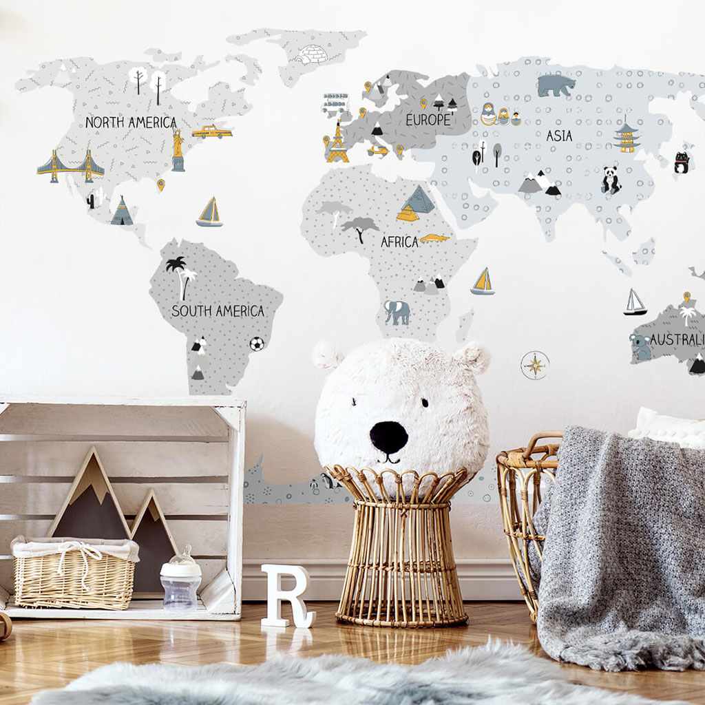 Krásná nálepka na zeď Mapa M. Šedé mapy světa jsou produkty nejvyšší kvality, vyrobené s maximální péčí a pozorností k detailům, udržované v tlumených skandinávských barvách, které dokonale zapadnou do prostoru dítěte. Mapy jsou nejen jedinečnou dekorací, ale také senzačním způsobem učení hrou. Děti poznávají kontinenty, oceány a světové strany, ale i památky a zajímavosti daného regionu či státu. Každý prvek mapy je pečlivě vyříznut z obrysu a nalepen samostatně, což usnadňuje aplikaci, zejména v případě velkých prostor. Velikost samolepky se měří po její aplikaci na zeď, přičemž kontinenty jsou od sebe v patřičné vzdálenosti. Samolepka je zajištěna speciálním matným laminátem, který ji chrání před poškrábáním při každodenním používání a zároveň usnadňuje lepení – fólie je silnější a snáze se přenáší na zeď. Pokud hledáte dokonalý způsob, jak oživit dětský pokojíček, naše samolepky na zeď jsou tou správnou volbou. Objednejte si je ještě dnes a udělejte radost svému dítěti.